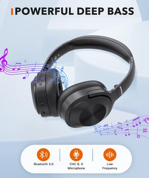 INFURTURE Q1 Active Noise Cancelling Headphones with Microphone,Wireless Over Ear Bluetooth Headphones, Deep Bass,40H Playtime