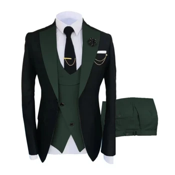 Men Suits 3 Pieces Tailored Best Man Groom Wedding Tuxedo Slim Fit Jacquard Two-color Blazer Jacket Vest Pants Tuxedo Clothing