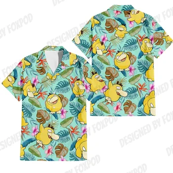 Men Street Fashion Summer Daily Shirt Hawaiian Cartoon Print Casual Loose Shirts Short Sleeve Beach Loose Tops