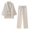 European and American Style 2024 Spring and Summer New Women’s Clothing Wrinkle Effect Double Breasted Suit Jacket Pants Set