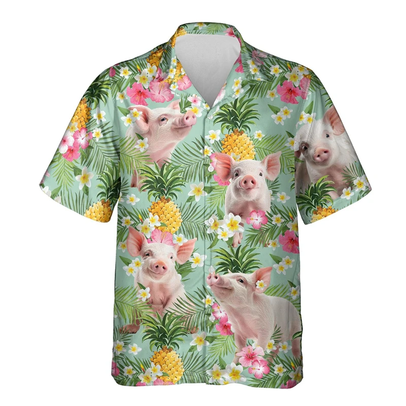 Funny Animal Pig 3D Printed Beach Shirt Cute Pet Graphic Shirts For Men Clothes Casual Hawaiian Surfing Short Sleeve Boy Blouses