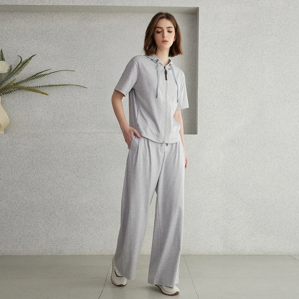K2109XK2111X Luxury Women’s Clothing Ladies 100% Pure Cotton Outfits Casual Wear 2 Piece Sets Short sleeved sweatshirt Trousers